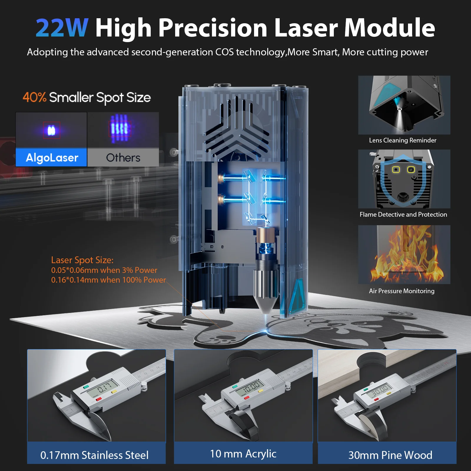 The AlgoLaser Delta 22W Diode Laser Engraver is the World's First Smart Laser Engraving Machine.