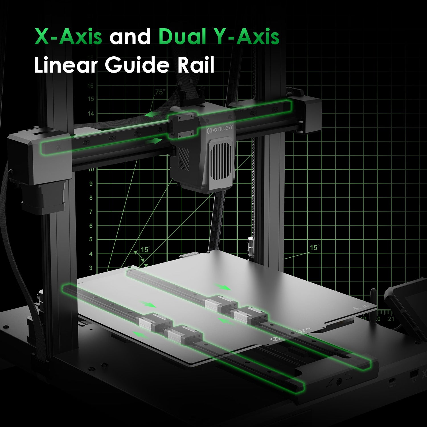 The X&Y axes are equipped with robust metal linear rails, providing smooth and precise motion for optimal print accuracy and longevity.