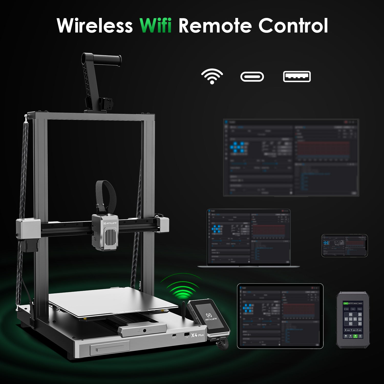 The SW-X4 PLUS can print via USB drive, or data-secure LAN. The embedded WIFI module allows for faster pairing and a more stable connection, making it a simple and reliable way of remote printing and monitoring your print farm.
