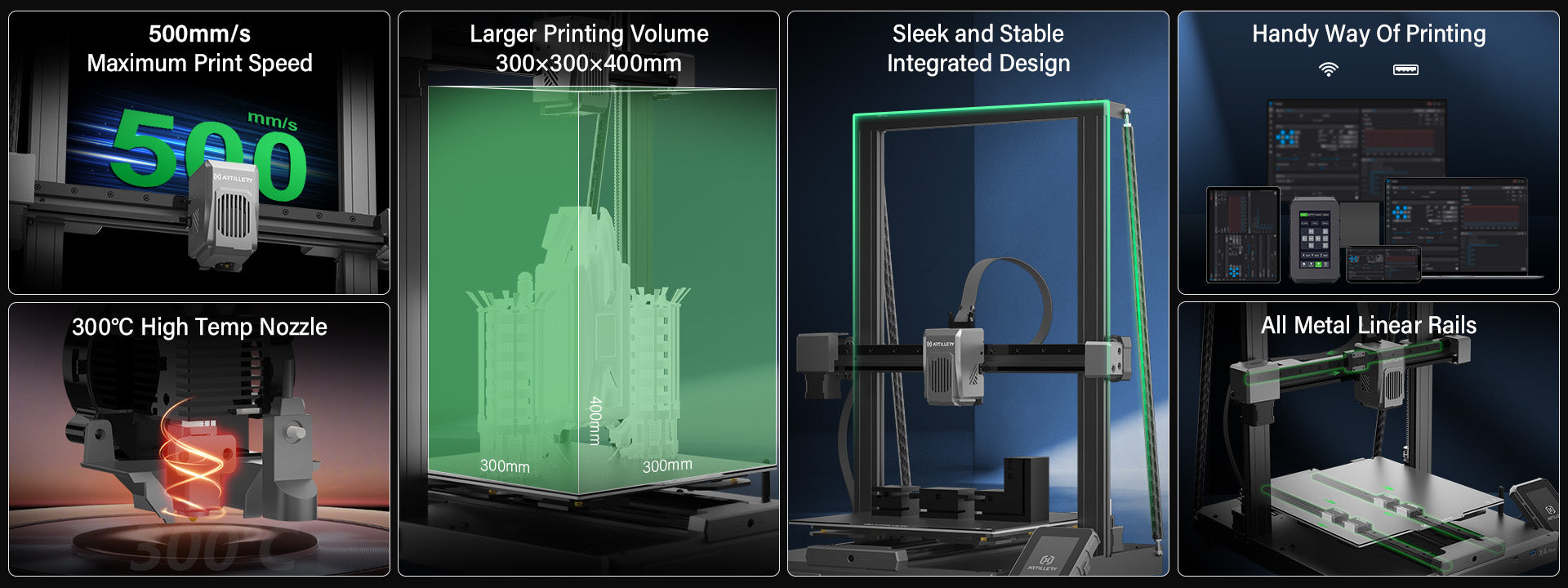 - Typical Printing Speed: 300mm/s
