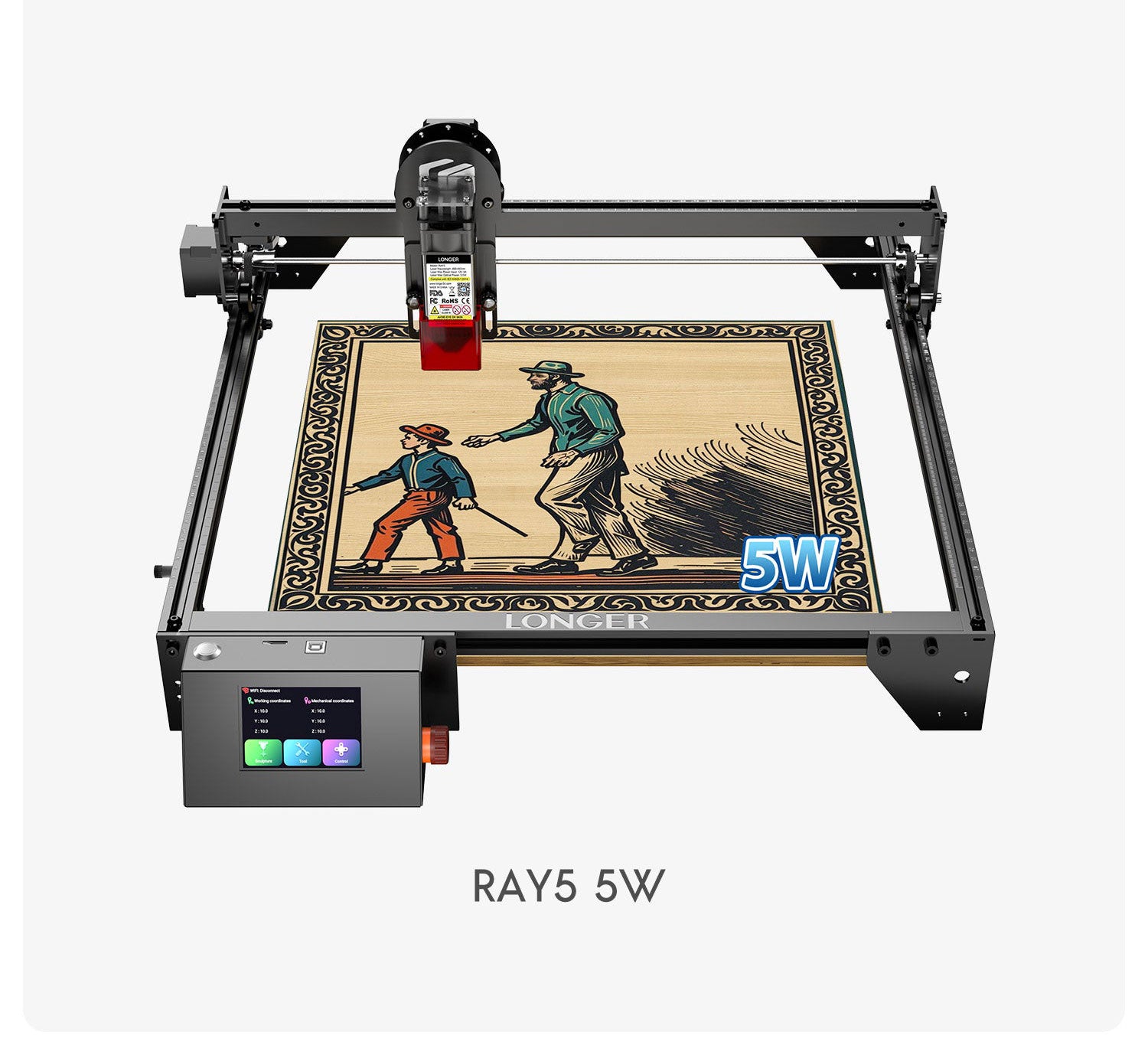 The 3.5-inch smart color screen allows you to control the machine easily. Built-in controller, just save the file to the TF card, RAY5 5W will engrave or cut without connecting a computer. Use Ray5 5W anytime and anywhere