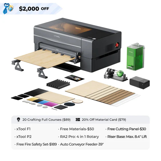 - RA2 Pro for xTool P2 + F1: 4-in-1 rotary helps process different objects.