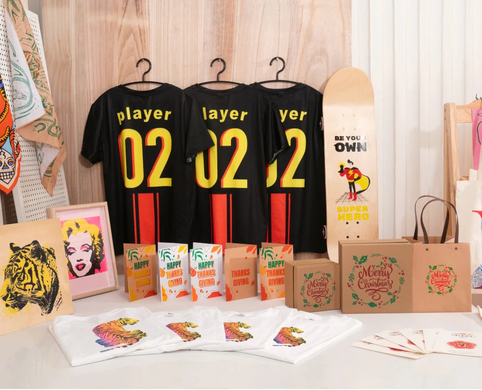 - Screen Printer Multi-Color Kit: Frame*4, Screen*12, Ink*10 and others.